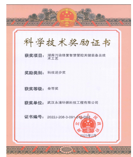 湖庫污染修復(fù)智慧管控關(guān)鍵裝備及技術(shù)工藝喜獲2022年湖北省科技進(jìn)步獎